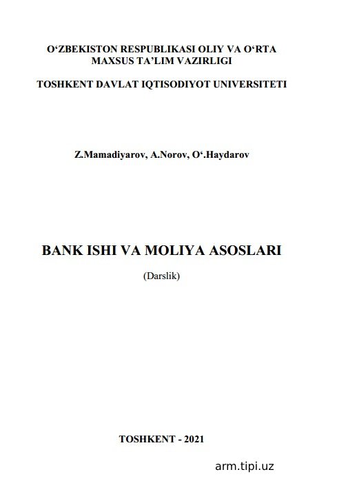 BANK ISHI VA MOLIYA ASOSLARI 27/10/2025 10:19 Iqtisodiyot fakulteti o‘quv adabiyotlari (bakalavr 0 1 2 3 4 5 kutubxona 0 47