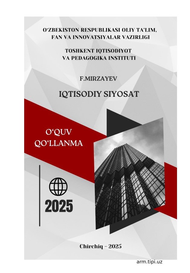IQTISODIY SIYOSAT 3 26/10/2025 12:33 Iqtisodiyot fakulteti o‘quv adabiyotlari (bakalavr 0 1 2 3 4 5 kutubxona 0 65
