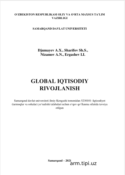 Djumayev A.X., Sharifov Sh.S., Nizamov A.N., Ergashev I.I. Glоbаl iqtisоdiy rivоjlаnish. O‘quv qo‘llanma. – Samarqand SamDU nas 26/11/2025 23:36 Iqtisodiyot fakulteti o‘quv adabiyotlari (bakalavr 0 1 2 3 4 5 kutubxona 0 19
