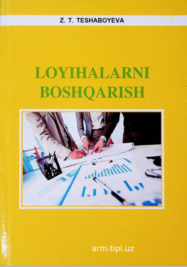 Z.T.Teshaboyeva. Loyihalarni boshqarish. “Andijon nashriyot-matbaa” MChJ. 2023. 152 bet. 26/11/2025 10:07 Iqtisodiyot fakulteti o‘quv adabiyotlari (bakalavr 0 1 2 3 4 5 kutubxona 0 17