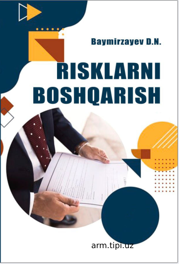 Baymirzayev D.N. Risklarni boshqarish. O‘quv qo‘llanma. – Namangan “MASHRAB” nashriyoti, 2024. – 224 bet. 26/11/2025 10:22 Iqtisodiyot fakulteti o‘quv adabiyotlari (bakalavr 0 1 2 3 4 5 kutubxona 0 14