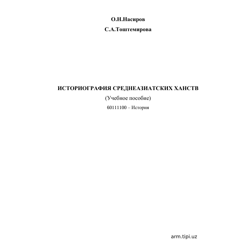 ИСТОРИОГРАФИЯ СРЕДНЕАЗИАТСКИХ ХАНСТВ