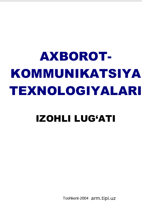 AXBOROT- KOMMUNIKATSIYA TEXNOLOGIYALARI Nomlanishi Yozilgan yili: 2004 - yil . Bo'limi: Kompyuter tizimlari va ularning dasturiy ta’minoti Elektron resurs QR code surati: Resurs haqida Ko'chirib olish axborot-kommunikatsiya-texnologiyalari.pdf Hajmi: 3.28 Mb Ko'chirib olganlar: 4 Fayl nomi: axborot-kommunikatsiya-texnologiyalari.pdf Faylni online o'qish: axborot-kommunikatsiya-texnologiyalari.pdf O'xshash resurslar Tarmoq texnologiyalari A.A.Karimov, Z.A. Muqumov, M.S.Tulayev Buxgalteriya hisobining Axborot tizimlari 2018 Buxgalteriya hisobi ning Axborot tizimlari INFORMATIKA VA AXBOROT TEXNOLOGIYALARI OCHIQ AXBOROT TIZIMLARIDA AXBOROT-PSIXOLOGIK XAVFSIZLIK