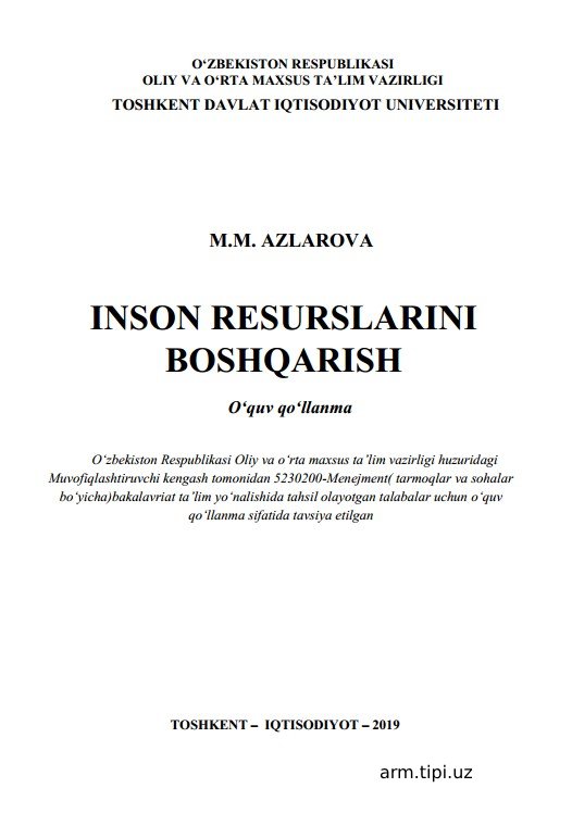 INSON RESURSLARINI BOSHQARISH 26/10/2025 13:06 Посмотреть файл онлайн: 1azlar1.pdf 1azlar1.pdf [733.93 Kb] (cкачиваний: 275) Iqtisodiyot fakulteti o‘quv adabiyotlari (bakalavr 0 1 2 3 4 5 kutubxona 0 39