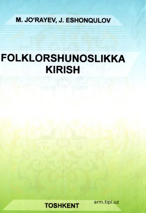 Folklorshunoslikka kirish Nomlanishi Yozilgan yili: 2020 - yil . Bo'limi: Oʻzbek tili va adabiyoti (Bakalavr) uchun oʻquv ad Elektron resurs QR code surati: Resurs haqida Ko'chirib olish folklorshunoslikka_kirish-2.pdf Hajmi: 5.86 Mb Ko'chirib olganlar: 13 Fayl nomi: folklorshunoslikka_kirish-2.pdf Faylni online o'qish: folklorshunoslikka_kirish-2.pdf O'xshash resurslar IQTISODIY SIYOSATGA KIRISH IQTISODIY SIYOSATGA KIRISH IQTISODIY SIYOSATGA KIRISH B.E.Mamaraximov, M.A.Mamatov. Iqtisodiy siyosatga kirish IQTISODIY SIYOSATGA KIRISH