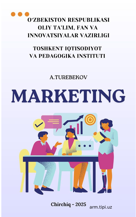 MАRKETING 28/10/2025 09:34 Посмотреть файл онлайн: oquv-qollanma_marketing_a_a_turebekov.pdf oquv-qollanma_marketing_a_a_turebekov.pdf [3.74 Mb] (cкачиваний: 21) Iqtisodiyot fakulteti o‘quv adabiyotlari (bakalavr 0 1 2 3 4 5 kutubxona 0 31