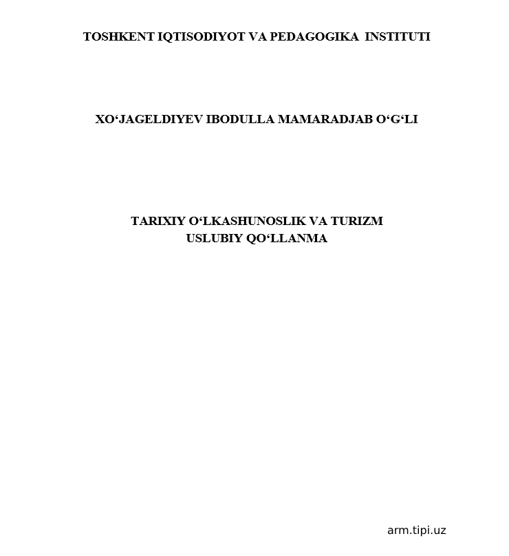 TARIXIY O‘LKASHUNOSLIK VA TURIZM USLUBIY QO‘LLANMA