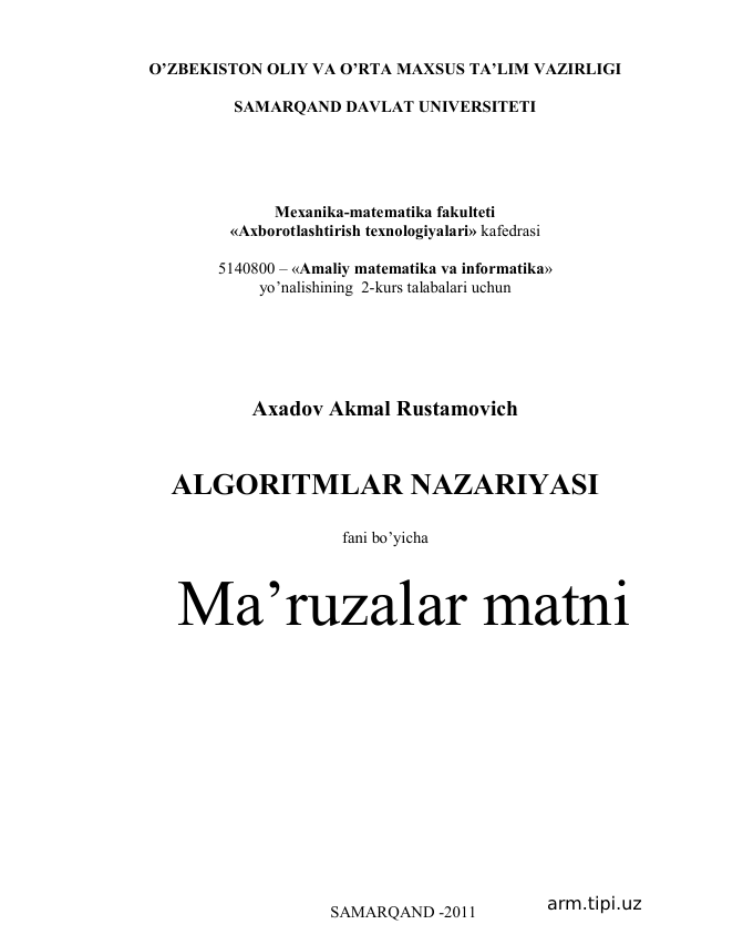Faylni online o'qish: axadov-akmal-rustamovich_-allgoritmlar-nazariyasi.pdf