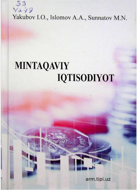 I.O. Yakubov, A.A.Islomov, M.N.Sunnatov. Mintaqaviy iqtisodiyot.Darslik. – T.Iqtisodiyot, 2019. – 228 b. 27/11/2025 10:01 Посмотреть файл онлайн: 2_-i_o_-yakubov-a_a_islomov-m_n_sunnatov_-mintaqaviy-iqtisodiyot_darslik_-t_iqtisodiyot-2019_-228-b.pdf 2_-i_o_-yakubov-a_a_islomov-m_n_sunnatov_-mintaqaviy-iqtisodiyot_darslik_-t_iqtisodiyot-2019_-228-b.pdf [32.14 Mb] (cкачиваний: 10) Iqtisodiyot fakulteti o‘quv adabiyotlari (bakalavr 0 1 2 3 4 5 kutubxona 0 25