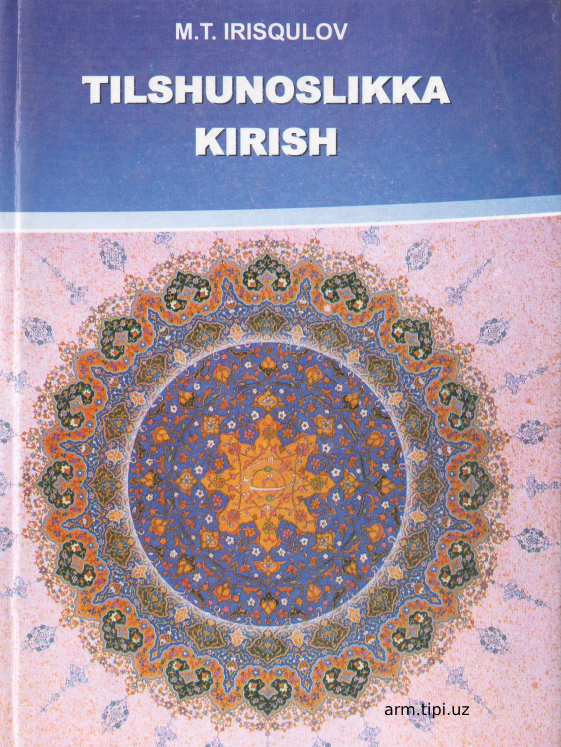 Tilshunoslikka kirish Nomlanishi Yozilgan yili: 2020 - yil . Bo'limi: Oʻzbek tili va adabiyoti (Bakalavr) uchun oʻquv ad Elektron resurs QR code surati: Resurs haqida Ko'chirib olish tilshunoslikka-kirish_-irisqulov.pdf Hajmi: 5.53 Mb Ko'chirib olganlar: 13 Fayl nomi: tilshunoslikka-kirish_-irisqulov.pdf Faylni online o'qish: tilshunoslikka-kirish_-irisqulov.pdf O'xshash resurslar IQTISODIY SIYOSATGA KIRISH IQTISODIY SIYOSATGA KIRISH IQTISODIY SIYOSATGA KIRISH B.E.Mamaraximov, M.A.Mamatov. Iqtisodiy siyosatga kirish IQTISODIY SIYOSATGA KIRISH