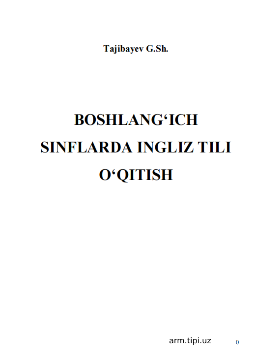 BOSHLANG‘ICH SINFLARDA INGLIZ TILI O‘QITISH Nomlanishi Yozilgan yili: 2019 - yil . Bo'limi: Xorijiy til va adabiyoti (Bakalavr) uchun oʻquv ad Elektron resurs QR code surati: Resurs haqida Ko'chirib olish boshlangich_sinflarda_ingliz_tili_oqitish-pdf-book.pdf Hajmi: 2.1 Mb Ko'chirib olganlar: 2 Fayl nomi: boshlangich_sinflarda_ingliz_tili_oqitish-pdf-book.pdf Faylni online o'qish: boshlangich_sinflarda_ingliz_tili_oqitish-pdf-book.pdf O'xshash resurslar Boshlang`ich sinflarda matematikao'qitish metodikasi 2005 Boshlang'ich sinflarda matematika o'qitish metodikasi labaratorya Boshlang'ich sinflarda matematika o'qitish metidikasi 2 MAKTABGACHA VA BOSHLANG’ICH TA’LIMDA INGLIZ TILINI O’QITISH METODIKASI BOSHLANG ICH SINFLARDA MATEMATIKA O QITISH METODIKASIDAN LABORATORIYA MASHG l LOTLARI