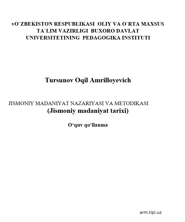 JISMONIY MADANIYAT NAZARIYASI VA METODIKASI Nomlanishi Yozilgan yili: 2022- yil . Bo'limi: Sport faoliyati (Bakalavr) uchun oʻquv adabiyotlar Elektron resurs QR code surati: Resurs haqida Ko'chirib olish tursunov-oqil-amrilloyevich.docx Hajmi: 13.55 Mb Ko'chirib olganlar: 5 Fayl nomi: tursunov-oqil-amrilloyevich.docx Faylni online o'qish: tursunov-oqil-amrilloyevich.docx O'xshash resurslar A.Jo’rayev, M.Usmonova Jismoniy shaxslarni soliqqa tortish, O’quv qo’llanma.2015. 216-bet JISMONIY MADANIYAT NAZARIYASI VA METODIKASI Boshlang`ich sinflarda matematikao'qitish metodikasi 2005 TARIX O'QITISH METODIKASI B.I.Isroilov, R.O . Xolbekov Buxgalteriya hisobi nazariyasi