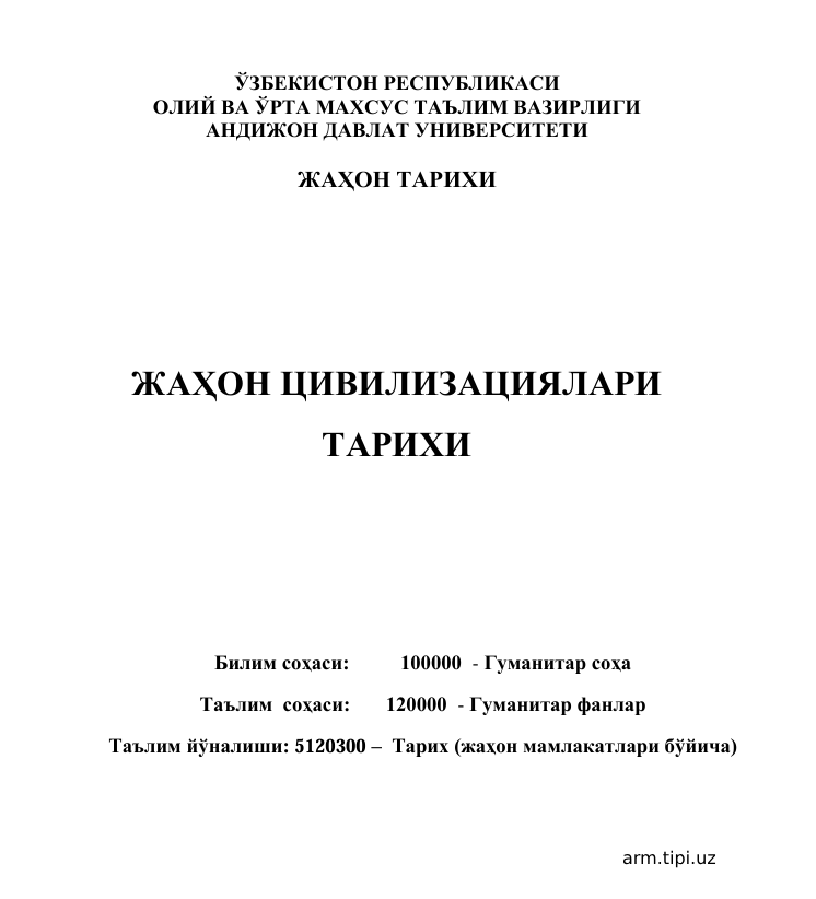 ЖАҲОН ЦИВИЛИЗАЦИЯЛАРИ ТАРИХИ